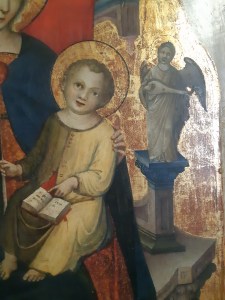 Nicolò di Pietro (fl. 1394-1427) Enthroned Madonna with Child, music making angels and the patron Vulciano Belgarzone of Zara (detail); Venice, Gallerie dell’Accademia