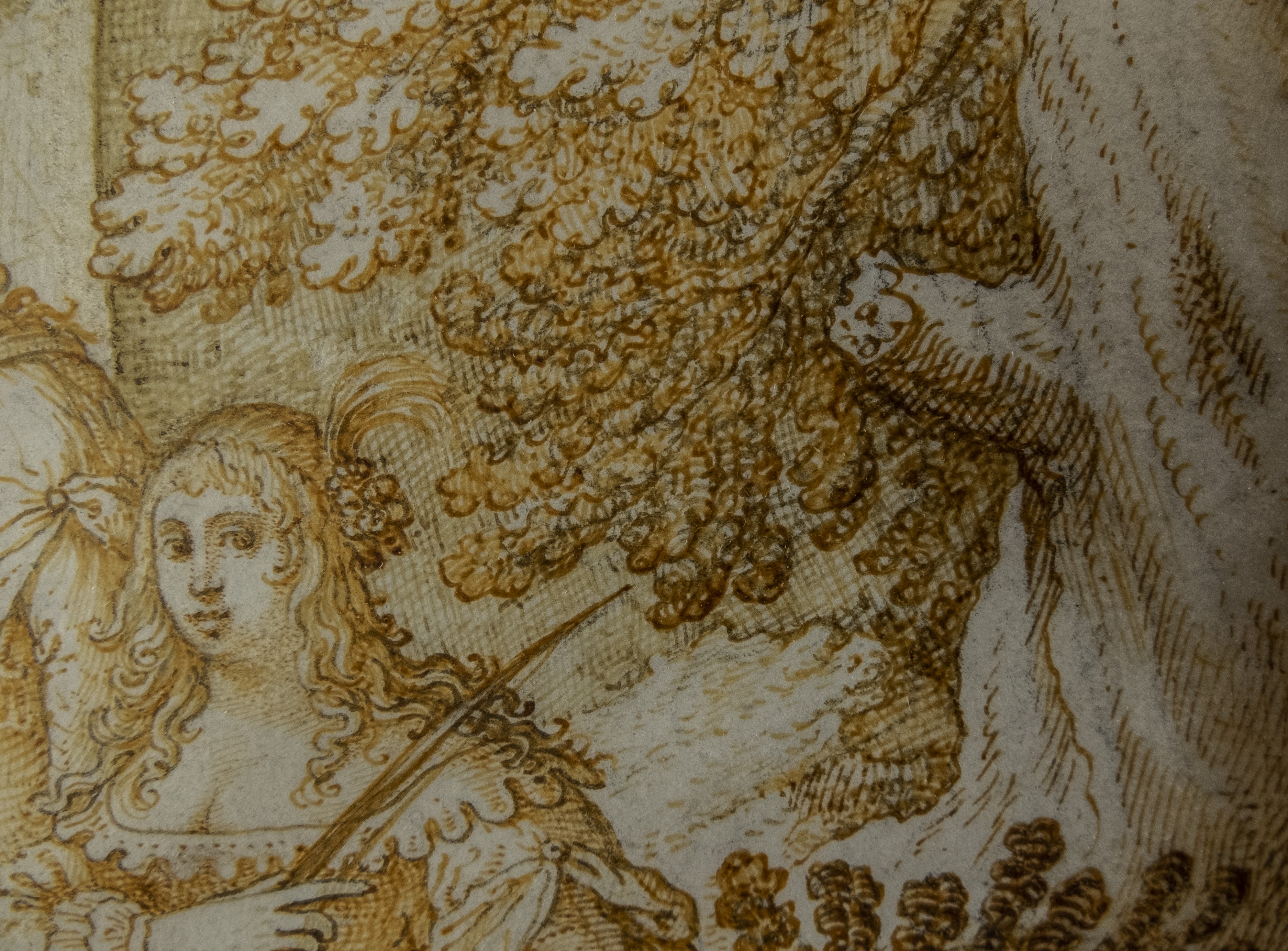 vellum, pen in brown ink, pen in black ink, graphite 353 x 284 mm